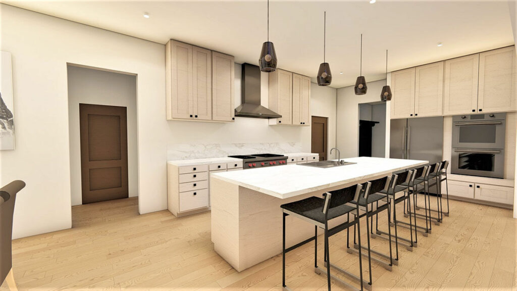 With its soaring vaulted ceilings, the great room feels almost cathedral-like, offering an embrace of architectural beauty.