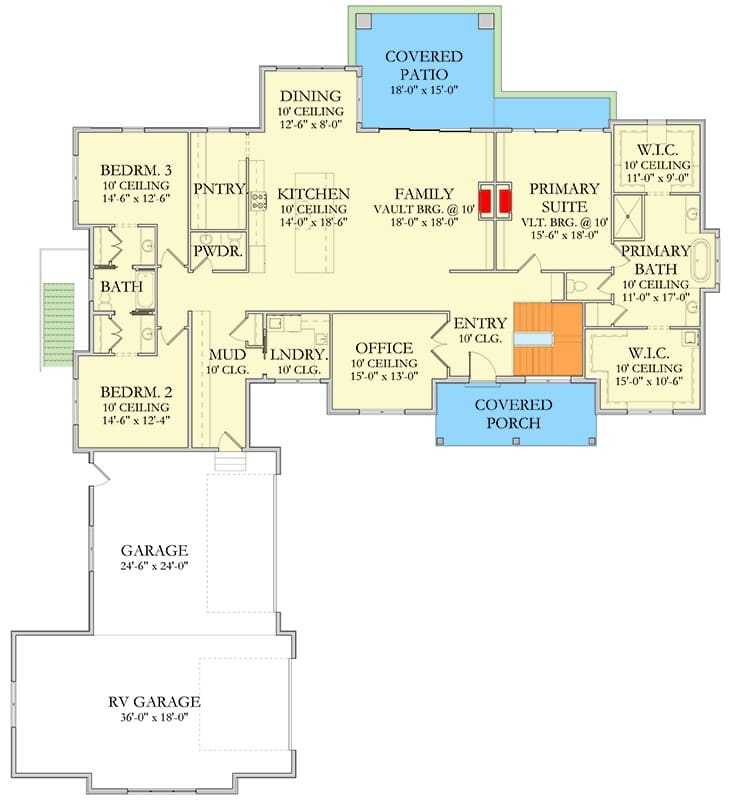 From the welcoming entry and flowing living areas to the primary suite, secondary bedrooms, home office, covered patio, and three-car RV garage, every room placement supports daily living and practical use.