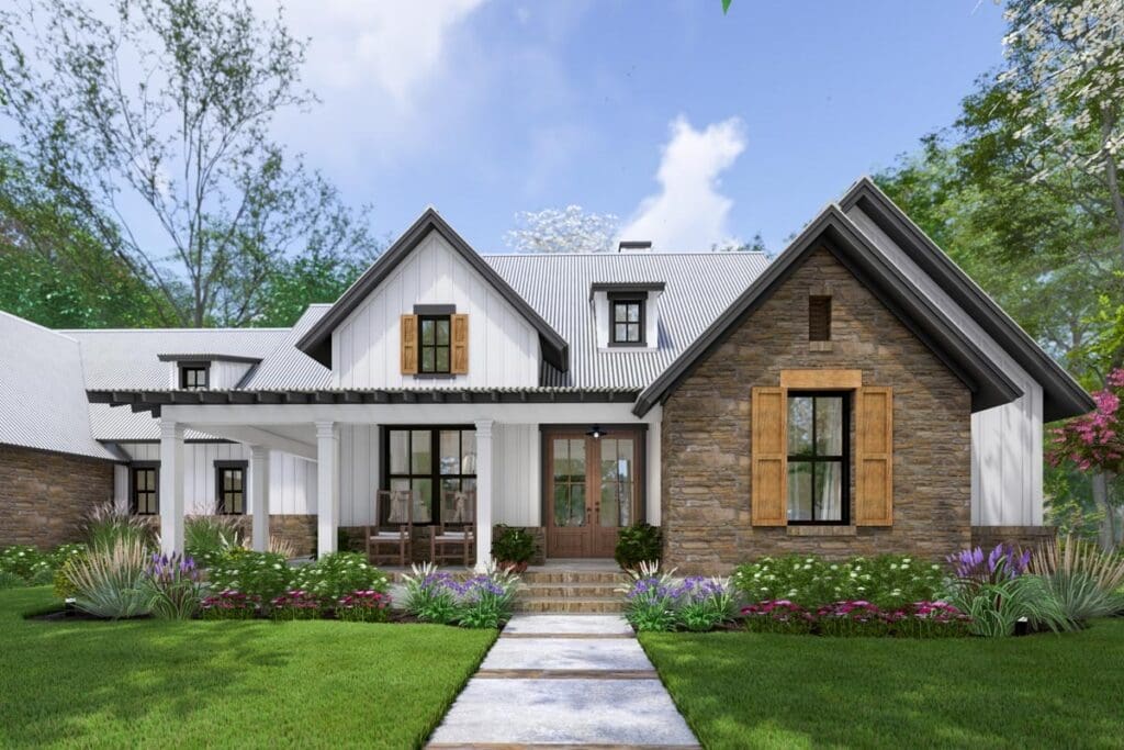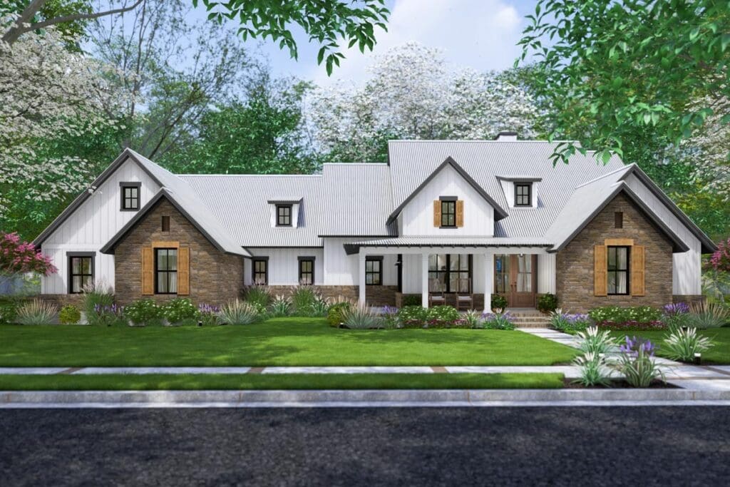 With its gabled rooflines and generous front porch (a whole 230 square feet!), it practically screams “Welcome home!”—but, you know, in a tasteful farmhouse drawl.