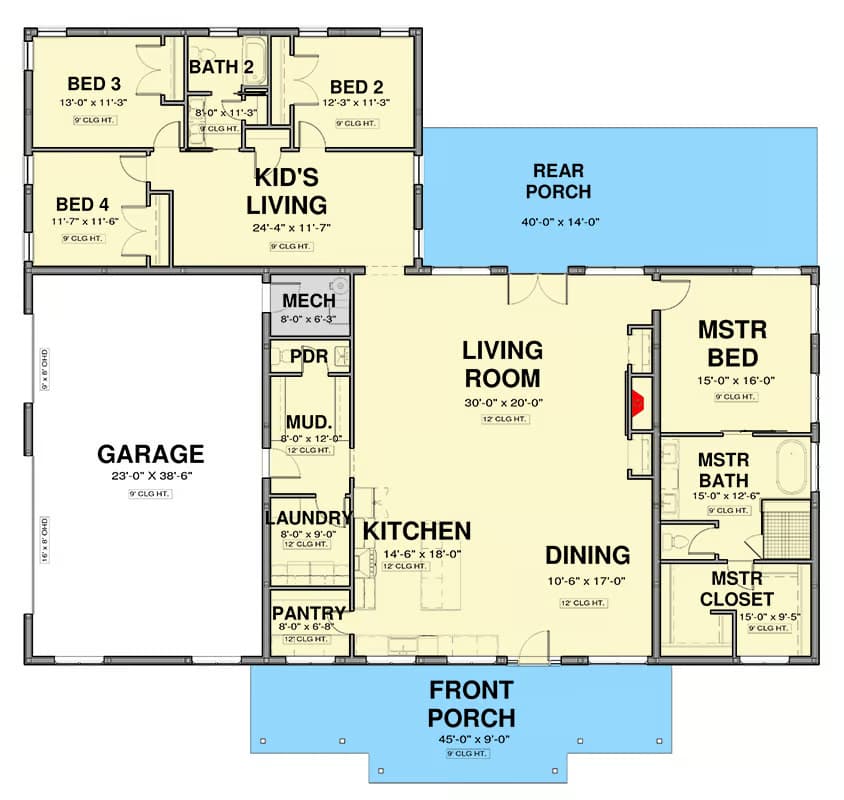4-Bedroom 1 Story Modern Farmhouse With Expansive Rear Porch (Floor Plan)