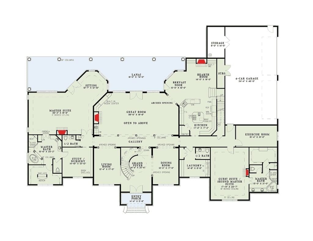At 6,388 sq ft, with 4 bedrooms, 4.5+ baths, and a thoughtful two-story layout, this plan is the definition of exquisite design.