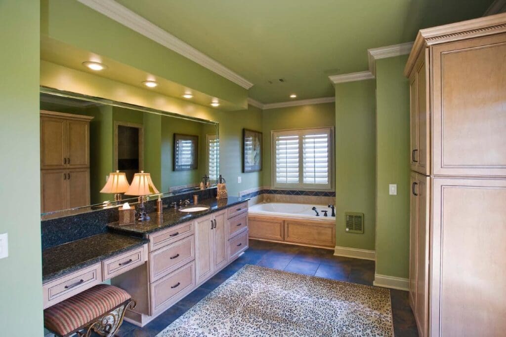 There’s space for a large tub, a walk-in shower, and dual vanities—all arranged for comfort and convenience.