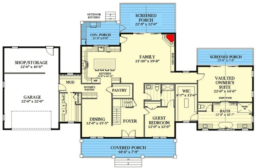 The laundry and mudroom are strategically placed right off the garage—because nobody wants to track muddy shoes across hardwood floors.