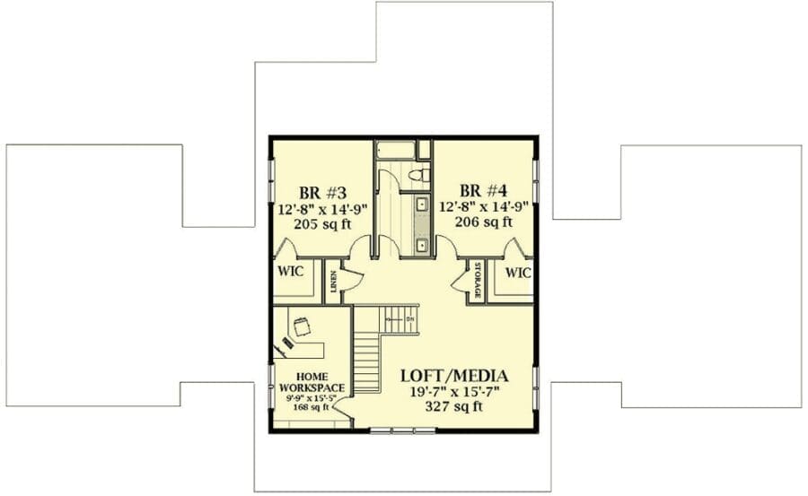 4-Bedroom 2-Story New American Farmhouse with Upstairs Loft/Media Room (Floor Plan)