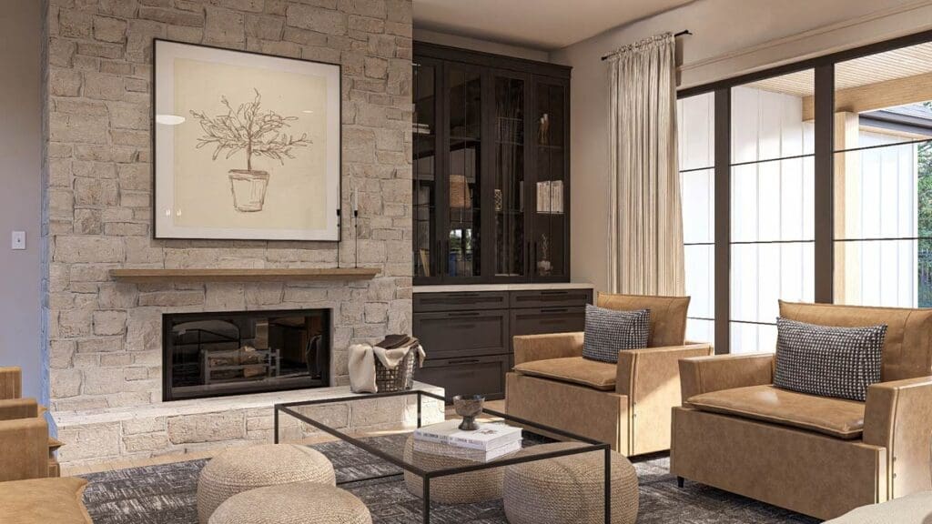 A fireplace anchors the space for those cozy winter nights, and there’s ample room for your oversized sectional, grandma’s antique coffee table, and even that indoor plant you’re still trying not to kill.