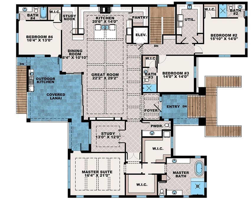 With 4,124 square feet of single-story comfort, 4 beds, 4 baths, and a ground-level 4-car garage, this plan proves you don’t have to choose between style and practicality when you buy your dream home.