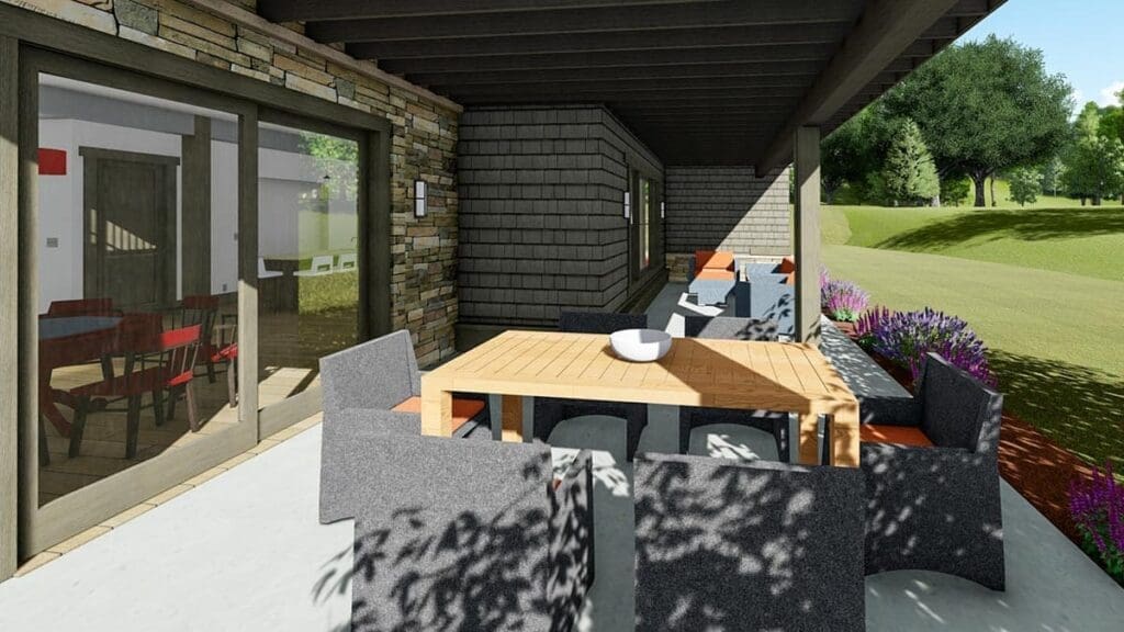 Imagine rocking chairs, potted flowers, or seasonal décor adding personality to the façade.