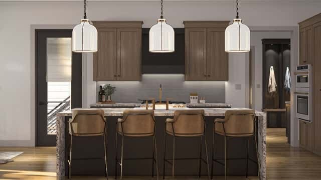 Speaking of cooking, the kitchen island isn’t just a design statement—it’s practical. With the sink facing forward, you can wash up while still chatting with friends in the family room or keeping an eye on the kids.