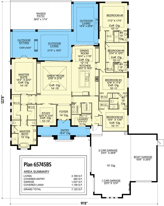5-Bedroom 1-Story Florida Home with Study and Boat Storage (Floor Plan)