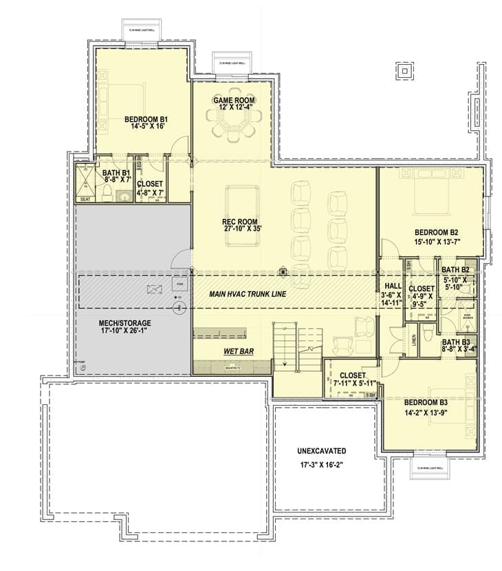 5-Bedroom 1-Story New American House with Finished Lower Level (Floor Plan)