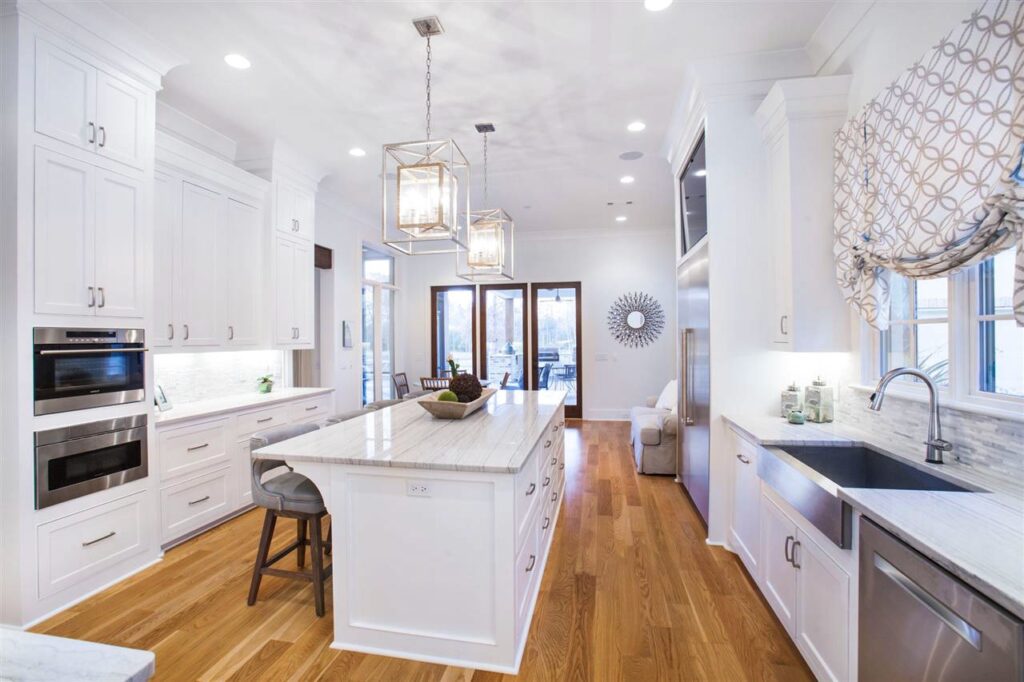 The open concept links seamlessly with the breakfast nook and has direct access to a screened porch, so whether you’re cooking pancakes or Pinterest-perfect charcuterie boards, you’re never isolated from the action—or the fresh air.
