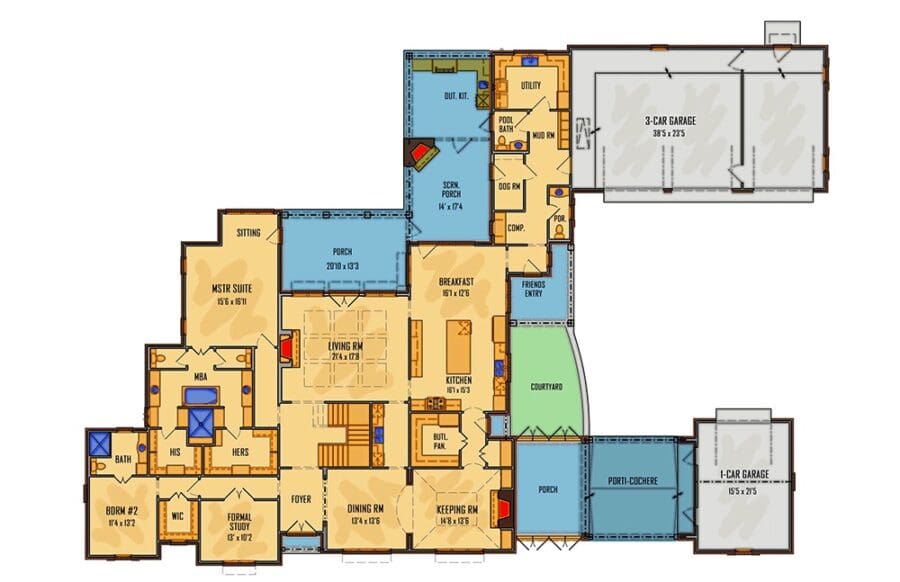 5-Bedroom 2-Story French Country House with Keeping Room (Floor Plan)