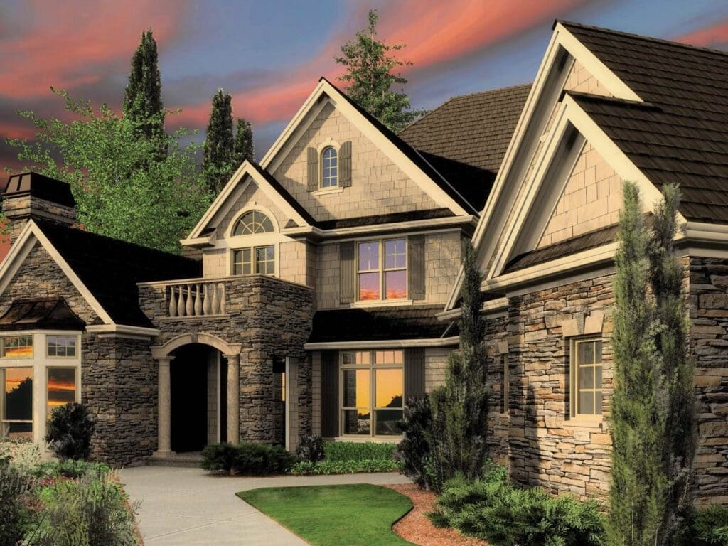 Right from the curb, this home commands attention with its classic European country aesthetic—think stone and stucco accents, steep rooflines, and charming details that feel both stately and inviting.