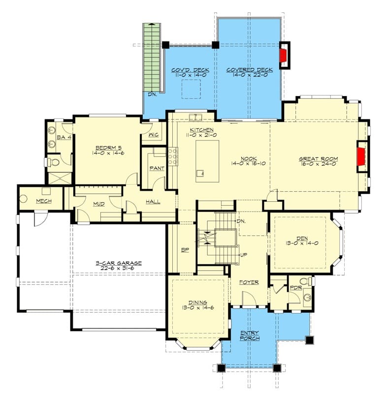The outdoor spaces in this plan are no joke. Covered deck? Check. Barbecue porch? Absolutely. These spots practically scream, “Invite the neighbors over for burgers!”