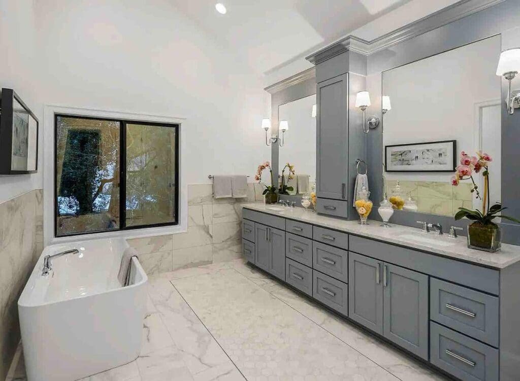 Now, let’s talk bathrooms. The five-fixture master bath feels like it was lifted from a luxury hotel. There’s space to spread out, unwind, and contemplate if you really need to go to work today.