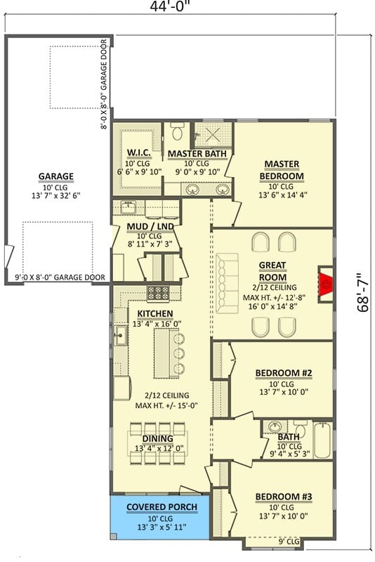 This house plan thoughtfully includes a study, perfect for remote work, reading, or personal projects. A separate space like this ensures productivity without sacrificing the open feel of the main living area.