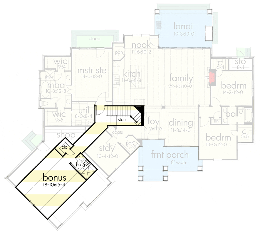 One of the plan’s most exciting features is the bonus room over the garage.