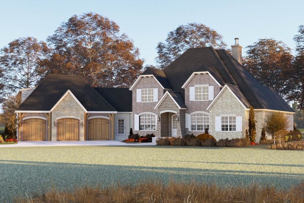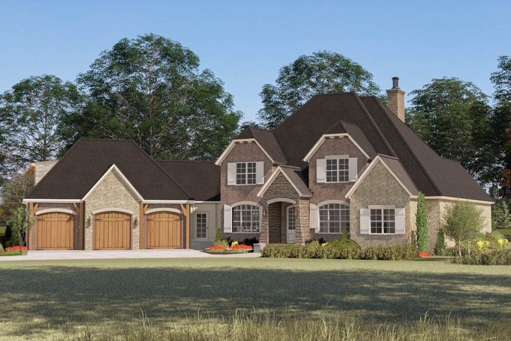 Let me paint a picture: You pull into the driveway after a long day, and you’re greeted by charming wood shutters, elegant stone and brick siding, and two clipped gables giving your home that classic French Country flair.