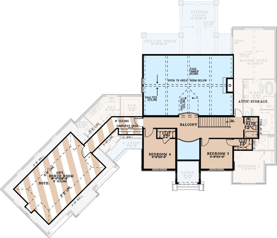 Two-Story 5-Bedroom European House with Bonus Over Garage (Floor Plan)