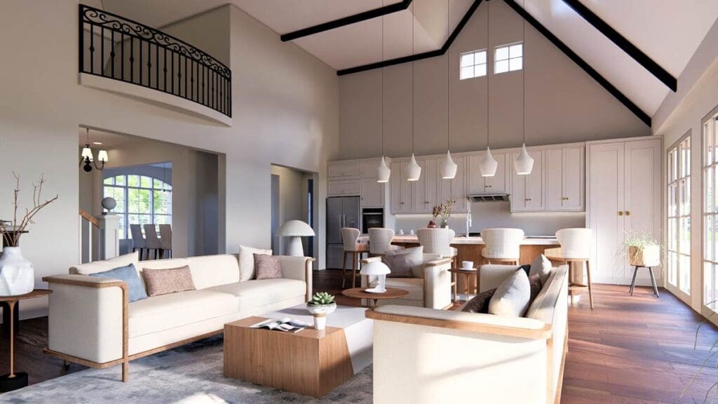 Okay, here’s where things start to get jaw-droppingly impressive: the two-story great room.